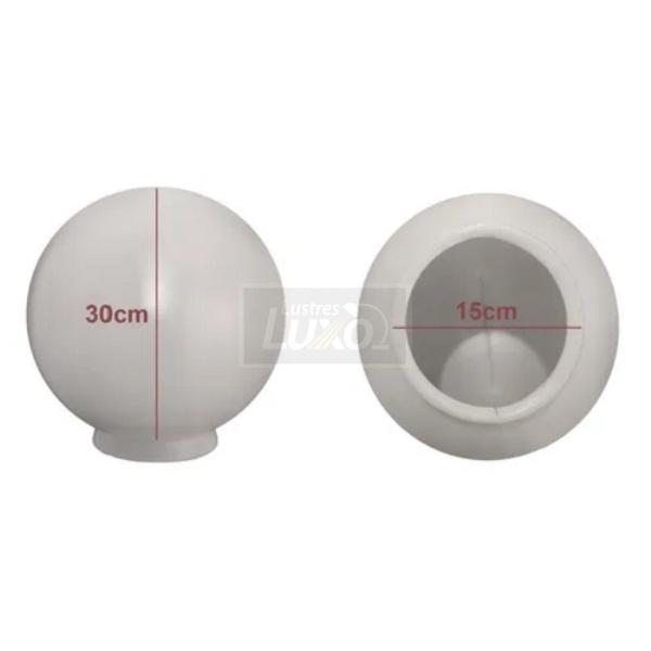Esse é o melhor globo do mercado, possui resistência a fortes impactos e proteção contra raios UV do sol aumentando sua vida útil e evitando seu ressecamento. Globo 15x30 para reposição, substitui modelo em vidro Globo de plástico polietileno, produzido em peça única, fabricado em polietileno de alta densidade na cor branco leitoso, aditivados contra raios ultra violeta. Medidas: Boca: 15cm / Diâmetro 30cm (Modelo 15x30) MEDIDA DA PEÇA Material: Globo de Polietileno (Plástico) Altura: 30 cm Diâmetro do Globo: 30cm Diâmetro da Boca do Globo: 15cm Peso: 0,560 gramas Lâmpada Compatível: Led Potência Máxima da Lâmpada: 40w Inclui Lâmpada: Não Garantia do Fabricante: 12 meses contra defeitos de fabricação Envio imediato Para todo brasil!!