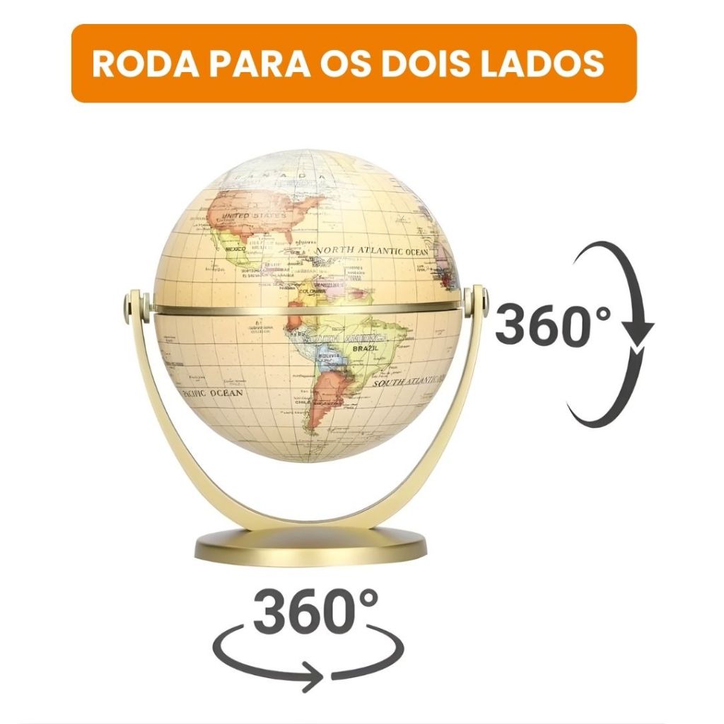 Globo Terrestre Giratório 360° de Mesa – Mapa Mundi Decorativo para Quarto, Sala e Escritório