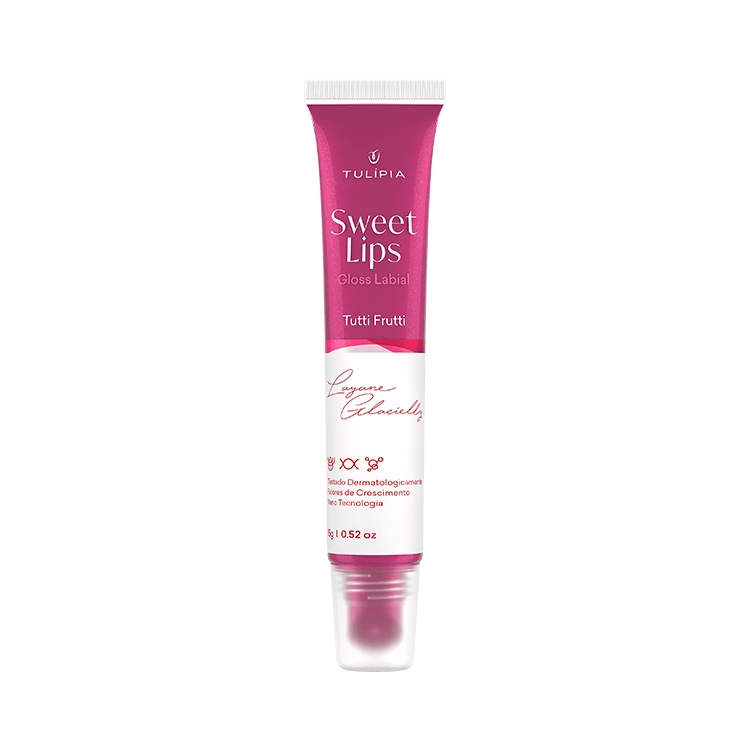 Gloss Labial Hidratação Profunda, Efeito de Volume, Tutti-Frutti - Sweet Lips Tulipia