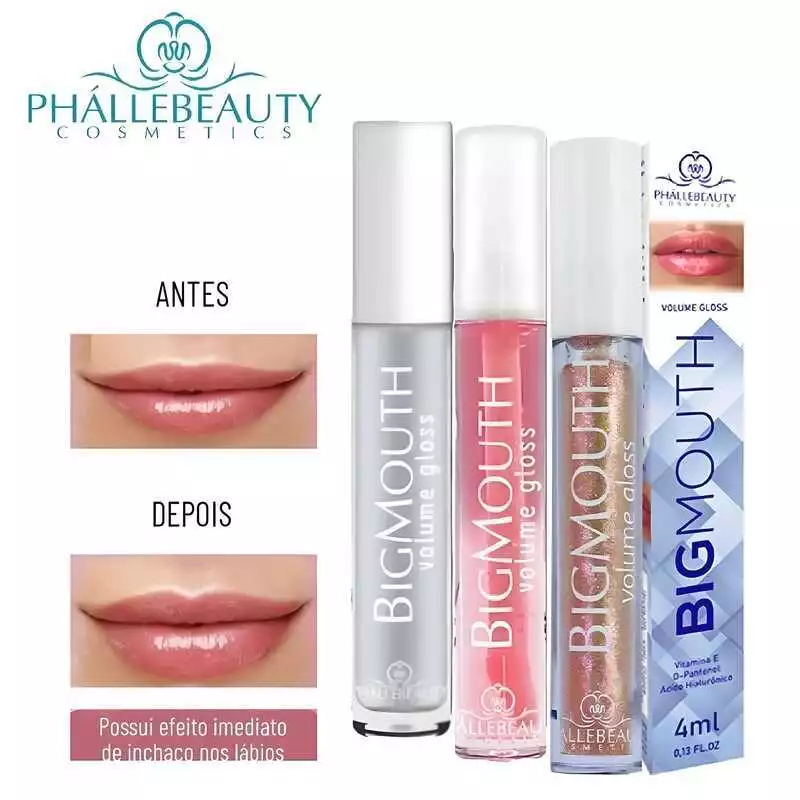 💋 Gloss Labial BigMouth – Phálle Beauty O Gloss Labial BigMouth da Phálle Beauty é um gloss regenerador labial desenvolvido para nutrir, hidratar e realçar a beleza natural dos lábios, proporcionando um efeito de preenchimento e volume não invasivo. Sua fórmula avançada ajuda a intensificar a cor dos lábios, deixando-os visualmente mais cheios, delineados e com brilho intenso, tudo isso sem desconforto. Conta com essência de Ginger, conhecida por sua ação volumizadora e suavizante, que estimula a aparência de lábios mais volumosos e definidos desde as primeiras aplicações. Ideal para mulheres que desejam lábios mais carnudos, hidratados, bem contornados e sensuais, com um acabamento moderno e confortável. ✨ Benefícios Lábios mais cheios e redefinidos em segundos Efeito volumizador não invasivo Hiper-hidratação com brilho intenso Realça a cor natural dos lábios Textura confortável, não pegajosa 💎 Ativos Principais Ácido Hialurônico – Hidratação profunda e efeito preenchedor Vitamina E – Ação antioxidante e regeneradora D-Pantenol – Maciez e proteção dos lábios Essência de Ginger – Ação volumizadora e suavizante