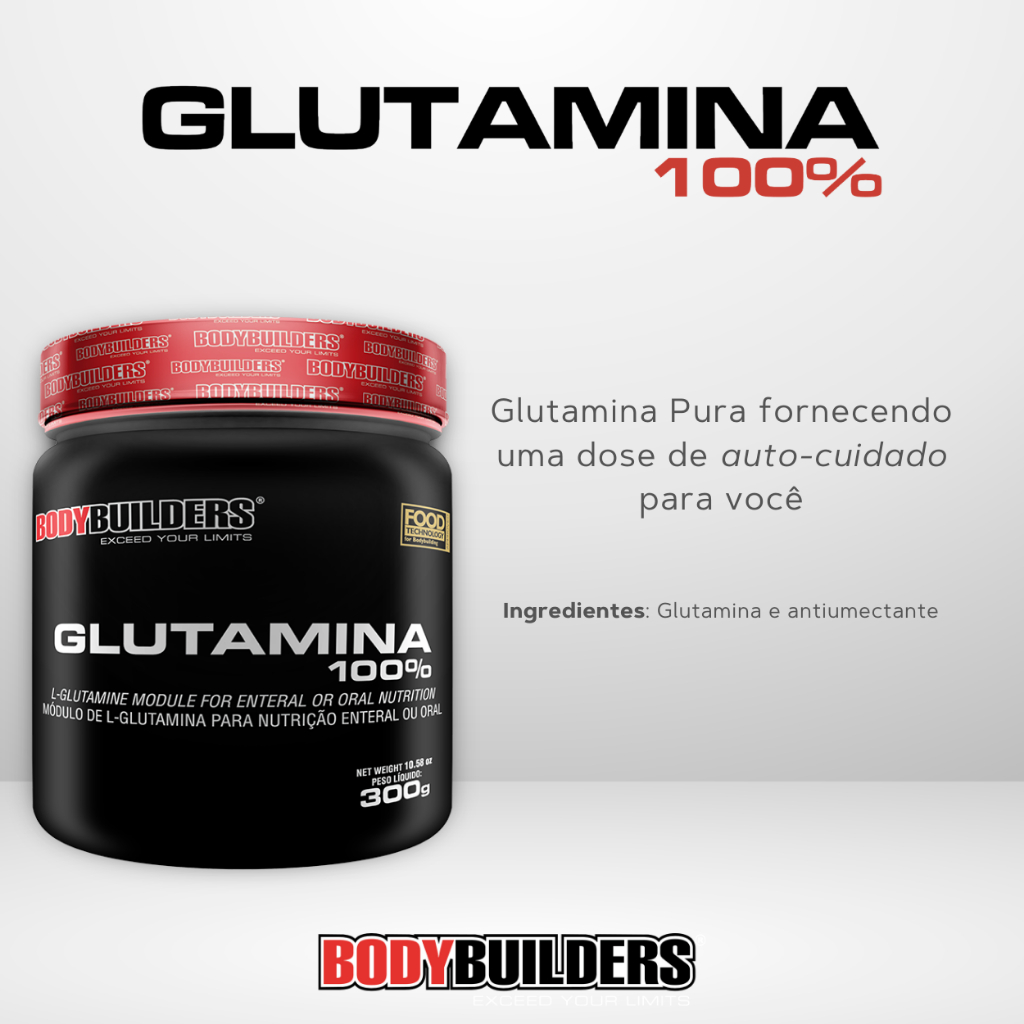 Glutamina 100% Pura 300g - Desempenho e Saúde - Bodybuilders