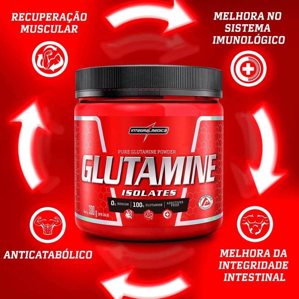 Glutamina 300g Integralmedica – Desempenho, Recuperação e Imunidade em Alta Pureza A Glutamina 300g da Integralmedica é um suplemento alimentar formulado com L-Glutamina pura, sem adição de corantes, conservantes ou qualquer outro tipo de aditivo. Com 100% de glutamina isolada, é uma excelente opção para atletas e praticantes de atividades físicas que buscam apoiar a recuperação muscular, fortalecer a imunidade e preservar a integridade dos tecidos durante treinos intensos. Composição por porção (5g – 1 scoop): Cada dose fornece 5.000 mg de glutamina pura, com zero calorias provenientes de gorduras, açúcares ou proteínas. Não há presença de sódio, fibras ou carboidratos, sendo um suplemento de altíssima pureza, livre de glúten e sem nenhum ingrediente adicional além da própria glutamina. Isso garante uma ação direta e eficaz, sem interferências externas na fórmula. Diferenciais do produto: - 100% Glutamina isolada - Livre de glúten, sódio, gorduras e aditivos artificiais - Sabor neutro e alta solubilidade - Pureza certificada pelo selo PURE AMINO ACID by AJINOMOTO Co.® - Disponível também em versão de 150g Funções e Benefícios: - A glutamina é o aminoácido mais abundante no corpo humano e desempenha papéis cruciais em diversos processos fisiológicos, especialmente em situações de estresse físico, como treinos de alta intensidade. Durante essas situações, a demanda corporal por glutamina aumenta, tornando sua suplementação essencial. Os principais benefícios incluem: - Recuperação muscular acelerada: ajuda a restaurar os níveis de glutamina nos músculos, prevenindo o catabolismo. - Fortalecimento do sistema imunológico: melhora a resistência a infecções e reduz o risco de imunossupressão pós-exercício. - Ação antioxidante: combate o excesso de radicais livres gerados durante atividades intensas. - Melhora da integridade intestinal: apoia a regeneração das células intestinais, essenciais para a absorção de nutrientes. - Auxílio no metabolismo energético: fornece suporte para a produção de energia em tecidos de alta demanda como músculos, cérebro e pulmões. Como tomar: - A Glutamina Integralmedica é extremamente versátil e pode ser consumida em qualquer momento do dia. Seu sabor neutro facilita a adição em sucos, shakes ou mesmo em água pura. Sugestões de uso: - Após os treinos: para acelerar a recuperação e reduzir o catabolismo. - Entre refeições: para manter níveis constantes no organismo. - Em qualquer momento do dia: conforme orientação de nutricionista ou médico. Observações importantes: - O produto acompanha sachês de sílica antiumectante, que não devem ser consumidos. Mantenha-os dentro da embalagem até o término do suplemento, pois ajudam a preservar a estabilidade do pó. Conclusão: - A Glutamina 300g da Integralmedica é uma excelente escolha para quem busca máxima pureza, eficácia e segurança na suplementação. Ideal para otimizar a recuperação muscular, fortalecer a imunidade e garantir a integridade intestinal — três pilares fundamentais para o bom desempenho esportivo e a saúde geral.