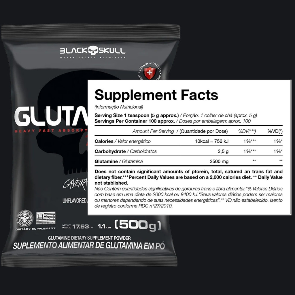 Glutamine Turbo Refil 500g Sem Sabor Blackskull