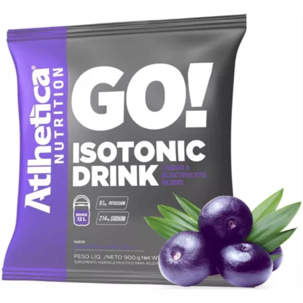 INFORMAÇÕES DE DESTAQUE - GO! Isotonic Drink da Athletica Nutrition; - Sabor Guaraná com Açaí; - Suplemento a base de carboidratos e sais minerais; - Contém 28g de carboidratos por dose: - Repositor de Eletrólitos; - Contém 214mg de sódio por porção; - Contém 328g de cloro por porção;. - Não contém glúten. O Go! Isotonic Drink da Athletica Nutrition é um suplemento a base de carboidratos e sais minerais que ajuda a manter os níveis de eletrólitos em atividades físicas intensas, fazendo uma reposição dos sais e eletrólitos durante os exercícios. Além disso, conta com 28g de carboidratos, 214mg de sódio e 328mg de cloro por dose trazendo eficácia para o seu desempenho durante as atividades físicas. Suplemente com o Go Isotonic Drink da Athletica! INGREDIENTES Fórmula carbo Blend: Sacarose, Dextrose desidratada, Maltodextrina, Frutose, Cloreto de sódio, Citrato de potássio, Aromatizante, Acidulante ácido cítrico e Edulcorante Artificial Acesulfame de potássio. Não contém glúten. SUGESTÃO DE USO Uma porção por dia (30g) ou conforme a orientação de um médico ou nutricionista. Dilua 30g (2 colheres de sopa) em 400ml e beba durante o treino ou atividade física. Uso adulto acima de 19 anos.