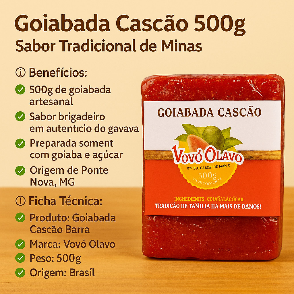 Goiabada Cascão Vovô Olavo 500g – Barra Tradicional | Sabor Autêntico de Minas