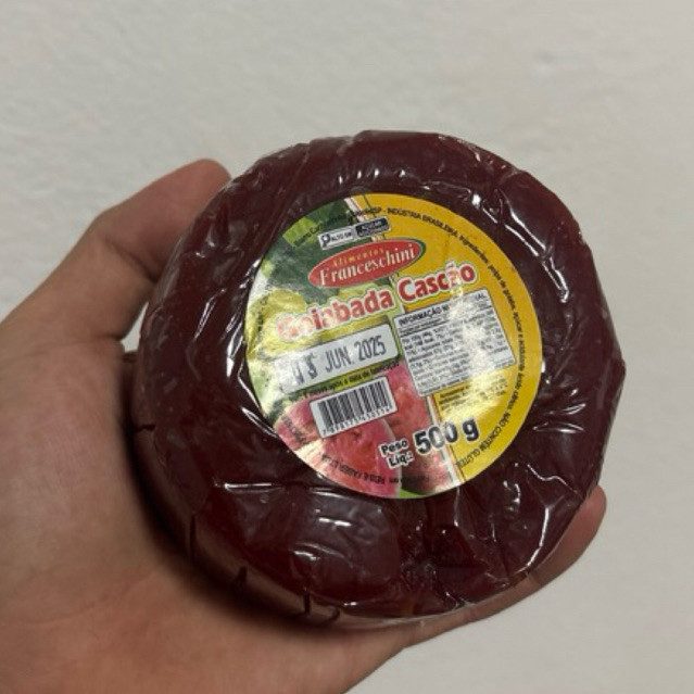 Goiabada cascão Franceschini. Feita com goiaba e açúcar. Produção à moda antiga de acordo com todos os ritos artesanais de escolha e preparo da goiabada. Com pedaços de casca no preparo, textura macia e deliciosa.