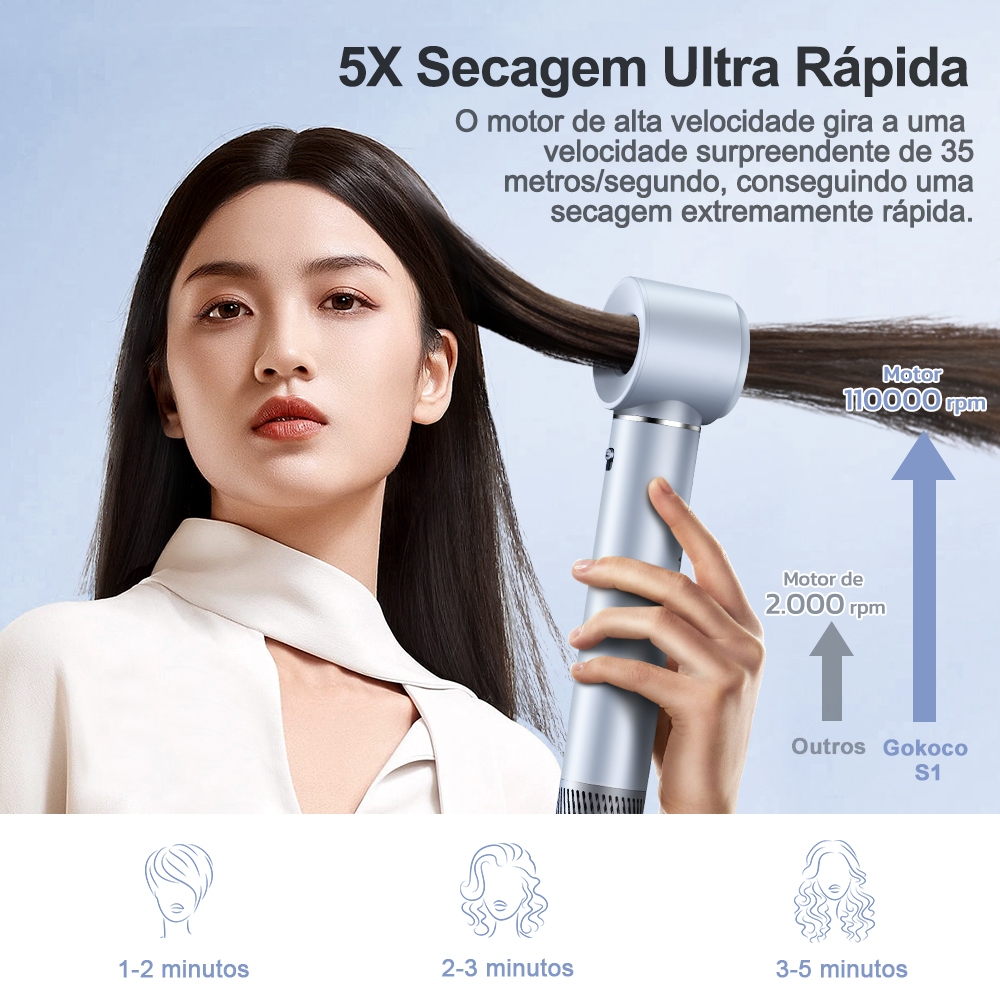 Perceber: 1. Luz branca: ar frio 2. Luz laranja: ar quente 3. Luz vermelha: ar quente 4. A luz indicadora muda de branco para laranja e vermelho: ar circulante 1. "Secador de cabelo multifuncional: equipado com uma cabeça de secador, um bico magnético, um pente alisador e duas varinhas de ondulação de 19 cm de comprimento (diâmetro de 40 mm e 30 mm). Oferece várias funções, como secagem, alisamento, ondulação e modelagem com apenas um conjunto. 2. Secagem ultrarrápida: equipado com um motor avançado de alta velocidade, tem um forte fluxo de ar de até 35 m/s. Seque cabelos na altura dos ombros em 5 minutos, cinco vezes mais rápido do que os secadores de cabelo tradicionais. 3. Danos causados pelo calor: 4 modos de temperatura são controlados com precisão por um microprocessador para monitorar e ajustar a temperatura 100 vezes por segundo, evitando danos causados pelo calor em comparação aos secadores tradicionais. 4. Cabelo brilhante e volumoso: emitindo 110 milhões de íons negativos durante a secagem, reduzindo efetivamente a eletricidade estática e o frizz, garantindo cabelos macios e brilhantes mesmo após uso prolongado. 5. Tamanho leve e compacto: o Gokoco S1 Pro pesa cerca de 400 g graças ao seu design ergonômico, 60% mais leve do que a maioria dos secadores de cabelo do mercado, garantindo um uso confortável sem dor. Seu tamanho compacto o torna ideal para viagens ou passeios, cabe facilmente na sua bolsa. 5. Varinha de ondulação estendida de 6,19 cm: A varinha de ondulação tem duas opções de diâmetro - 30 mm e 40 mm. Nossa varinha libera um poderoso fluxo de ar no sentido horário para ondular o cabelo automaticamente para criar cachos para dentro ou para fora sem danos causados pelo calor. O comprimento estendido garante maior eficiência de ondulação. X2 Tensão/Frequência: 110V-127V/60Hz Potência: 1500W Velocidade do vento: 2 marchas Modo de temperatura: Engrenagem de alta temperatura: 75 graus mais ou menos 5 graus; Engrenagem de temperatura média: 55 graus mais ou menos 5 graus; Engrenagem de ar frio: 30 graus mais ou menos 5 graus; Circulação de ar. Especificação de íons negativos: cerca de 200 milhões de íons negativos Motor: motor sem escova de alta velocidade de 120.000 rpm Velocidade do vento: cerca de 36m/s Ruído: menos que ou igual a 59 dB(A) Material do corpo: nylon com fibra grau V03.0 (material retardador de chama) Função de proteção: proteção contra falha do motor, proteção contra sobrecarga do motor, proteção contra superaquecimento, proteção contra bloqueio de vento Características especiais: 2 velocidade do vento, quatro temperaturas do vento (vento frio, vento quente, vento quente, frio e ciclo de calor quente) 120.000 velocidades de rotação, cabelo seco rápido, 200 milhões de íons negativos para cuidados com o cabelo, Tela cheia de ciência e tecnologia Comprimento da linha: 1,6M Peso da máquina: 408g Tamanho da máquina: 276*90*71mm X2 Na caixa: secador de cabelo manual Cartão de marca Bocal de ar magnético Gokoco X2 Secador de cabelo de alta velocidade --- O novo motor sem escova de alta velocidade aumenta a poderosa energia eólica: a energia eólica de 120.000 rpm fornece forte fluxo de ar a uma velocidade do vento de 36 m/s, que é 5 vezes mais rápida que os secadores de cabelo tradicionais. Leva apenas 2 a 5 minutos para secar o cabelo rapidamente. --- Cuidados capilares com íons negativos de alta concentração: 500 milhões de íons negativos são liberados durante o processo de secagem para equilibrar a eletricidade estática do cabelo, eliminar o frizz, reter a umidade, tornar o cabelo macio, macio e moderno, ao mesmo tempo que lhe confere um brilho saudável e natural. ---Design de redução de ruído, experiência silenciosa: O secador de cabelo com difusor adota tecnologia de redução de ruído de amortecimento de 8 camadas, ar de alto isolamento acústico integrado e material de absorção de som PI alemão, o ruído é de apenas 51db e não perturbará outras pessoas quando usado. ---Indicador de temperatura e modo de circulação: As luzes indicadoras do display indicam diferentes temperaturas, vermelho (75°), amarelo (55°) e verde (frio). Após ativar o modo de circulação, você pode alternar entre ar frio, ar quente e ar quente. , a função de memória facilita a última configuração de temperatura utilizada. --- Design moderno e leve, portátil para viagens: Adota design ergonômico e pesa apenas 408 gramas. Possui uma alça confortável e botões simples. O filtro apertado evita efetivamente que o cabelo seja sugado. É equipado com um poderoso bico magnético giratório de 360 ° para fácil ajuste de direção e a rede à prova de poeira com forte sucção magnética em um ângulo evita efetivamente a poeira do cabelo e é fácil de limpar. Adequado para casa e viagens, presente perfeito para família e amigos. Garantia do vendedor: 180 dias