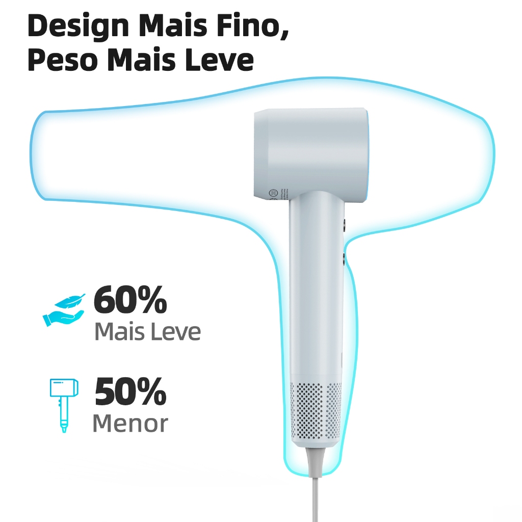 Secador de cabelo ultrarrápido com visor: usando o motor mais avançado de 110.000 rpm, gerando um forte fluxo de ar de até 25 m/s, pode secar cabelos na altura dos ombros em 5 minutos, cabelos médios em 3 minutos e cabelos curtos em 1 minuto, cinco vezes mais rápido. Mais importante que um secador de cabelo comum Sem danos ao cabelo: o microprocessador integrado monitora e ajusta a temperatura 100 vezes por segundo para garantir que ela esteja sempre abaixo de 80 °C, ajudando o cabelo a perder menos calor do que um secador de cabelo convencional e mantendo-o saudável. Temperatura e velocidade personalizáveis: Existem 4 modos de temperatura: ar frio, ar quente, ar quente e frio e ar frio. e 2 velocidades do vento - baixa e alta. O visor LCD mostra ícones para velocidade do vento e velocidade atual, enquanto o anel de luz ao redor opera em 2 configurações de velocidade no Modo de Velocidade. Cabelo mais brilhante e macio: libera mais de 300 milhões de íons negativos durante a secagem do cabelo, reduzindo efetivamente a eletricidade estática e o frizz. Seu cabelo ficará macio, suave e brilhante após uso prolongado. Design compacto e fácil de transportar: projetado ergonomicamente, 60% mais leve e 50% mais fino do que a maioria dos secadores do mercado, garantindo uso confortável e sem danos às mãos, perfeito para viajar ou colocar na bolsa ao sair Filtro de entrada magnético e cabeça de sucção: O filtro de entrada tem força magnética e furos densos que facilitam a instalação ou remoção da máquina para facilitar a limpeza e evitam com segurança que os cabelos fiquem presos. Bocal magnético giratório de 360 graus para modelagem, que fornece ar concentrado para modelagem precisa. O produto inclui: 1 secador de cabelo, 1 bico de pulverização fina, 1 manual do usuário, 1 suporte de parede e 1 caixa de armazenamento.