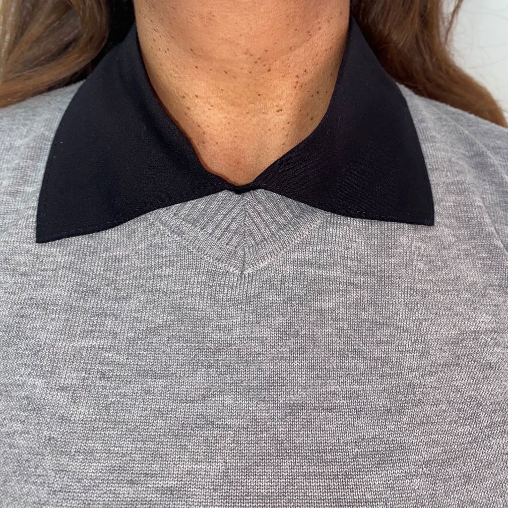Nossa Gola de Camisa Fake, Como uma única palavra. É um tecido mais durinho para fique com o caimento perfeito, com a aparência rústica do tricoline, sendo muito usado para peças de vestuário leve e confortável. com o fecho em Tic Tac para fácil utilização, combina tanto quanto o suéter quanto uma simples camiseta!