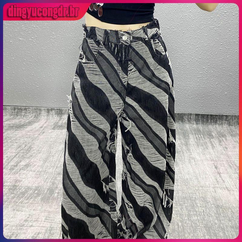 Gordo mm Cool Scalling Scale Design jeans feminino tamanho grande americano nicho solto ,pernas largas,Sapatos de arrast