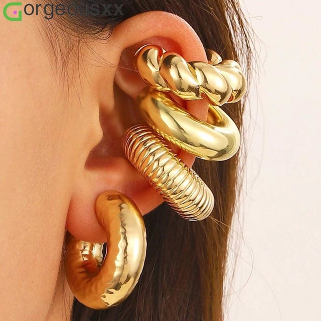 [Gorgeousxx] 4 Peças De Clipe De Orelha De Acrílico Em Forma De C Da Moda Para Mulheres , Brincos Redondos Sem Piercing