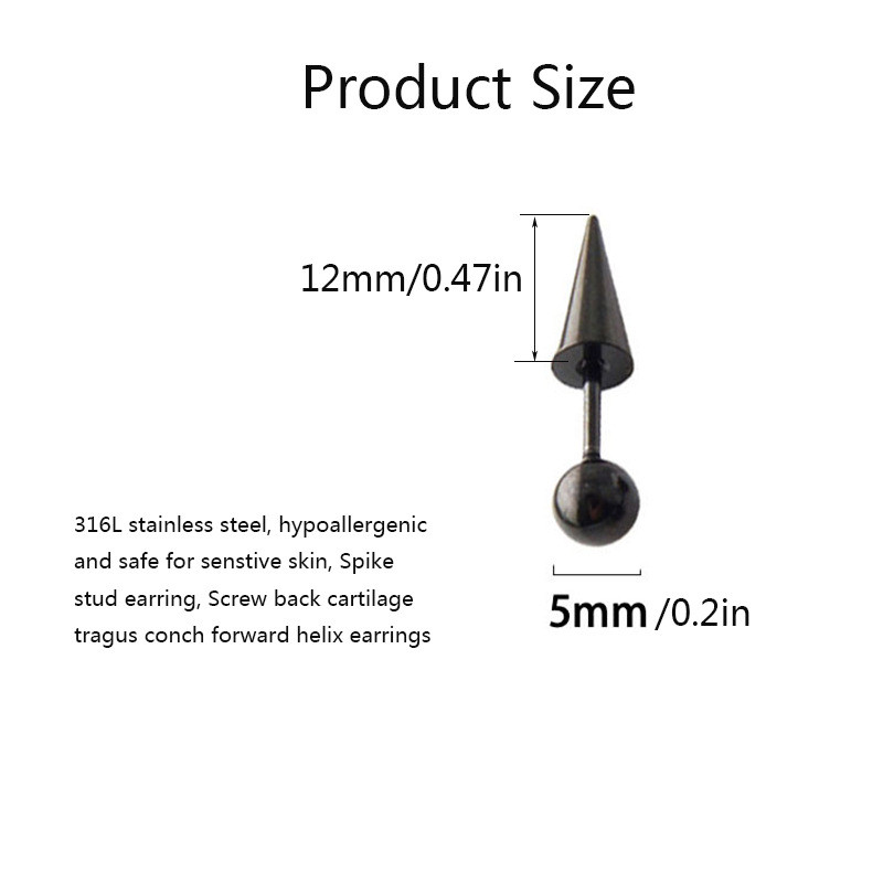 [Gorgeousxx] Brincos De Orelha Cônicos Com Ponta De Aço Inoxidável De 1 Peça Para Mulheres E Homens Joias Finas