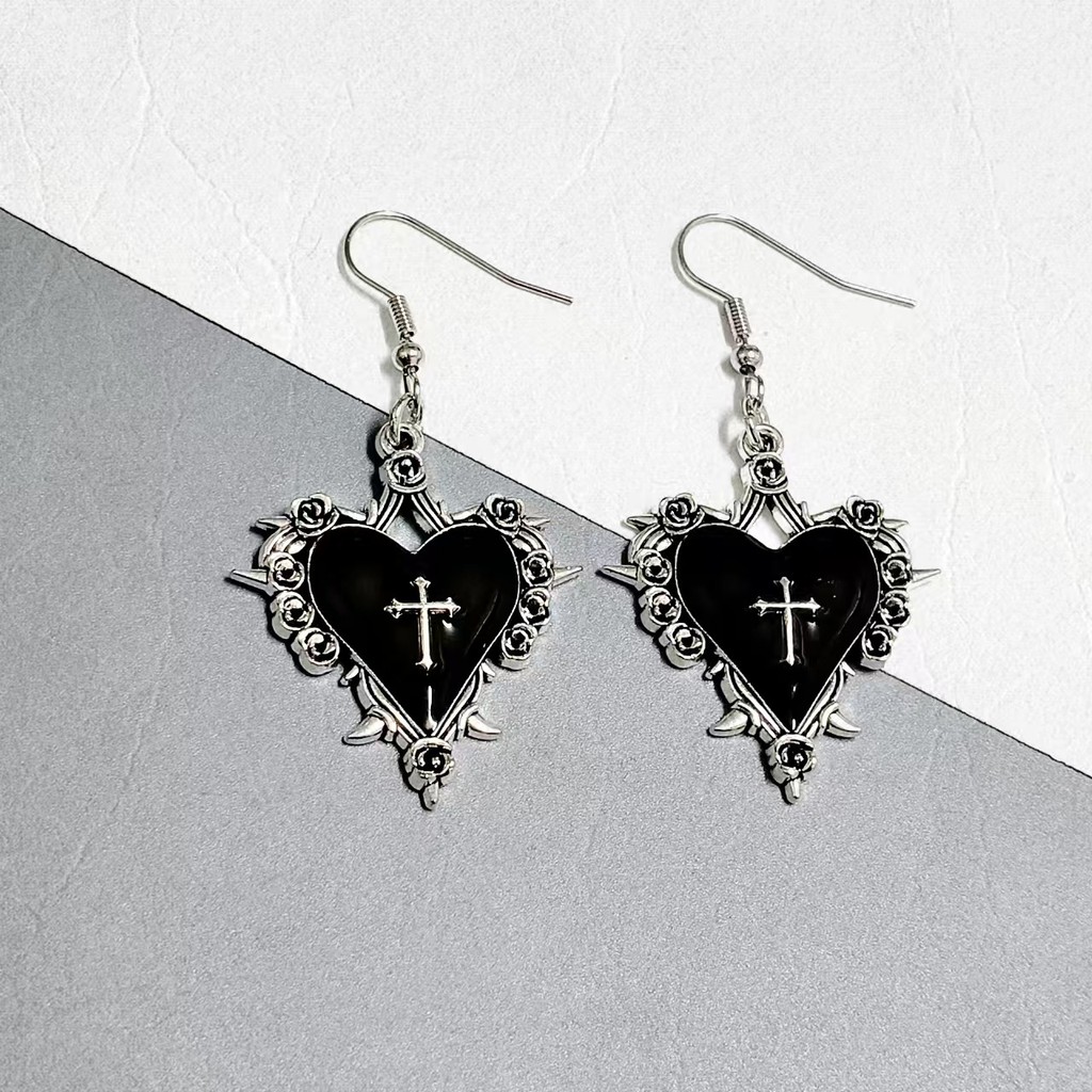 [Gorgeousxx] Gótico Espinho Espada Cruz Amor Coração Pingente Brincos De Gancho Para Mulheres Joias Estilo Punk