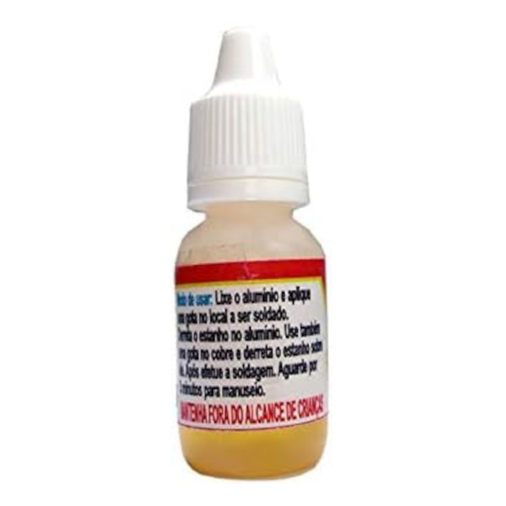 Gota Mágica - Frasco com 10 ml Fluxo para dar a liga da solda em cobre com alumínio. Use estanho comum. Contém 3 Unidades Aplicações: Fios e rabichos oxidados, soldas de escovas novas em bobinas de campo de alumínio, soquetes de lâmpada, enrolamentos de motores elétricos com fios de alumínio e instalações elétricas. Modo de usar: Lixe o alumínio e aplique uma gota no alumínio a ser soldado. Derreta o estanho no alumínio. Use uma gota também no cobre e derreta o estanho sobre ele. Após, efetue a soldagem. Aguarde 3 minutos para manuseio. Substitui a pasta de solda. Obs: O líquido do frasco pode estar na cor amarelada igual a foto ou na cor transparente. O produto é o mesmo, apenas o oxigênio em contato com o líquido altera a cor do produto porém continua com a mesma eficiência sem alterar suas propriedades. ***ATENÇÃO*** COMPARE AS NUMERAÇÕES E DESCRIÇÃO DO ANÚNCIO COM A SUA PEÇA OU INFORMAÇÕES. EM NOSSO ANÚNCIO CONSTAM A MAIORIA DOS NÚMEROS DE CONVERSÃO PARA COMPARAR. CASO NÃO TENHA A NUMERAÇÃO QUE PROCURA, FAÇA UM PERGUNTA PARA QUE POSSAMOS LOCALIZAR A PEÇA EQUIVALENTE. EQUIPE DL AUTO PARTS