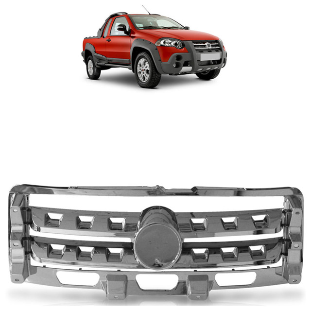 Grade Central Parachoque Dianteiro Fiat Palio Weekend Adventure Locker 2009 2010 2011 2012 Cromado Características: - Produto novo de ótima qualidade; - Alta resistência e durabilidade; - Feito sob medida, encaixe perfeito. Especificações técnicas: - Cor: cromado; - Não acompanha emblema; - Fabricado em plástico resistente. Compatível com os modelos: - Strada Adventure Locker de 2009 a 2012; - Palio Weekend Adventure Locker 2009 a 2012. Obs: valor anunciado referente à UNIDADE. Garantia: 90 dias. Dica: - Dê um novo visual para o seu carro, aqui você encontra os melhores produtos com os melhores preços. Importante: - NÃO somos responsáveis pela má instalação ou mau uso do produto, para evitar transtornos procure por um profissional especializado.