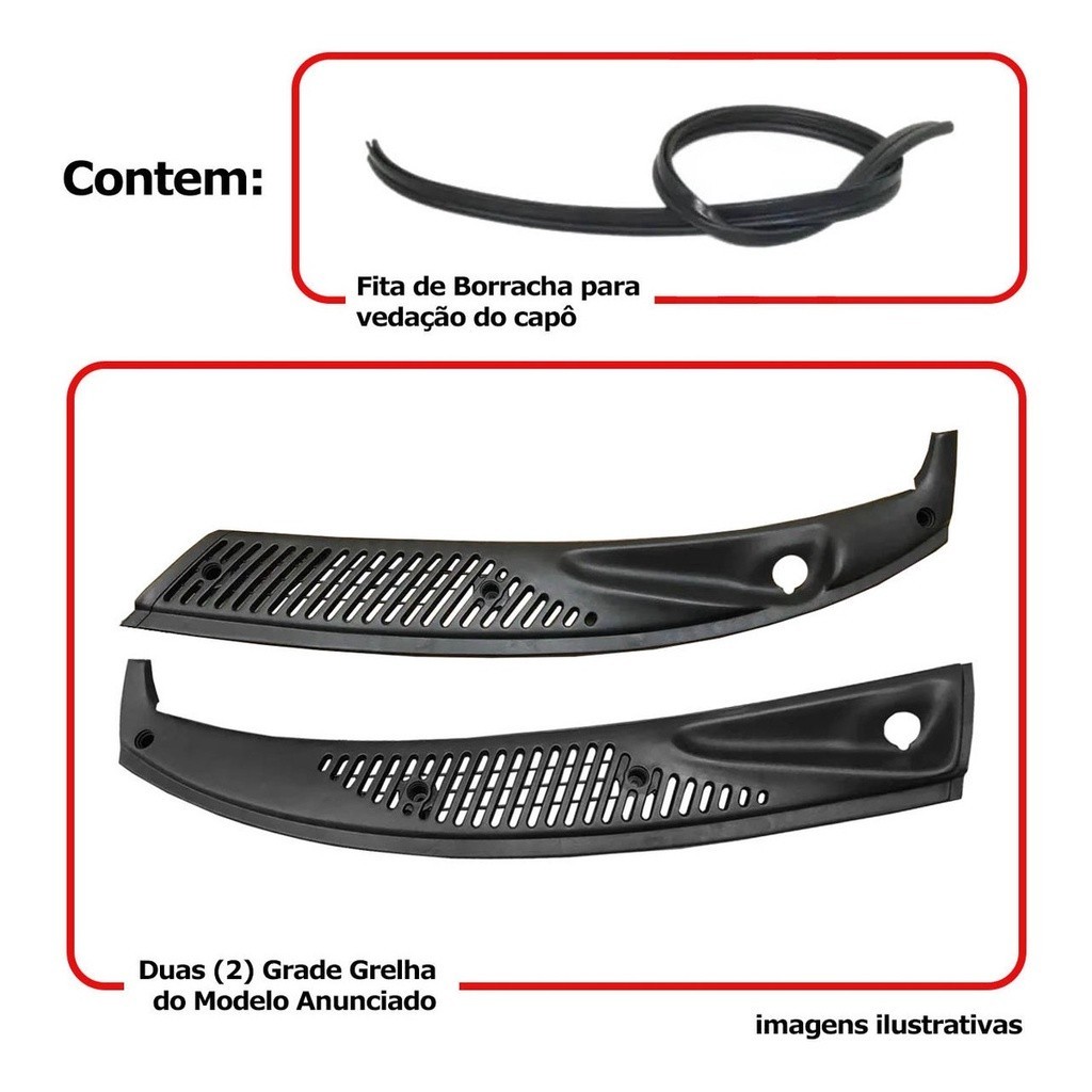Grade Churrasqueira do Capô para o VW Gol Parati Saveiro Bola G2 1995 1996 1997 1998 1999 Grade frontal de excelente qualidade fixação duradora como o original mesmo exposta ao calor Seu carro recuperará aquele visual clássico Gol Parati Saveiro Bola G2 95 96 97 98 99 Parati Bola G2 95 96 97 98 99 Saveiro Bola G2 95 96 97 98 99 ESPECIFICAÇÃO Feito em Plástico Resistente Modelo semelhante ao Original Produto Paralelo Cor Preto Fosco Base Fabricante Sofisticar ITENS INCLUSOS Uma 1 Grade Churrasqueira para o Lado Direito Uma 1 Grade Churrasqueira para o Lado Esquerdo Um 1 Friso de Borracha para a Vedação do Capô DIMENSÕES Comprimento 71 cm Largura 11 cm Altura 4 cm GARANTIA Garantia de 90 dias para defeitos de fabricação SOBRE O ENVIO Envio podendo ser feito até o próximo dia útil após confirmação de pagamento Em até 3 dias úteis em caso de boleto
