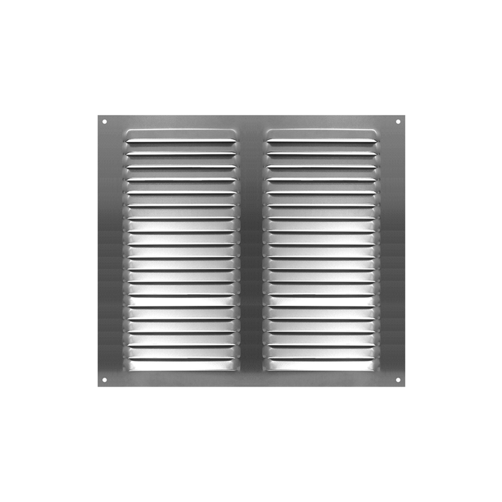 Grade em Alumínio 40 x 40 cm -De acordo com a regulamentação do Corpo de Bombeiros. -Tamanho de 40x40, acompanha parafusos e buchas para a instalação, mas podem ser fixadas também com silicone. -Possui borda de acabamento e pingadeira para evitar a entrada da água da chuva. -Utilização interna e externa. -Aceita pintura. -Grade de ventilação para entrada e saída de ar. -Feita de alumínio – não enferrujam. Grade de ventilação permanente para cozinhas, áreas de serviço, closets, banheiros, móveis etc.. Outros tamanhos e modelos disponíveis: -Em alumínio: 15x10, 15x15, 20x10, 20x15, 20x20, 25x25, 20x33, 30x30, 35x20, 40x40, 45x25, 45x45, 50x50, 56x34, 55x55, 40x60, 50x60 e 60x60 cm. (Alumínio sem pintura, ou pintura em Preta ou Branca). (Opcional com tela anti-inseto). -Plástico Quadrada Branca: 20x20 e 25x25 cm. -Plástico Redonda Branca: 100 mm, 150 mm e 200 mm. -Plástico Quadrada com Aletas para Dutos: 100 mm, 125 mm e 150 mm. -Para Vidro Redonda: 150 mm, Transparente ou Branca.