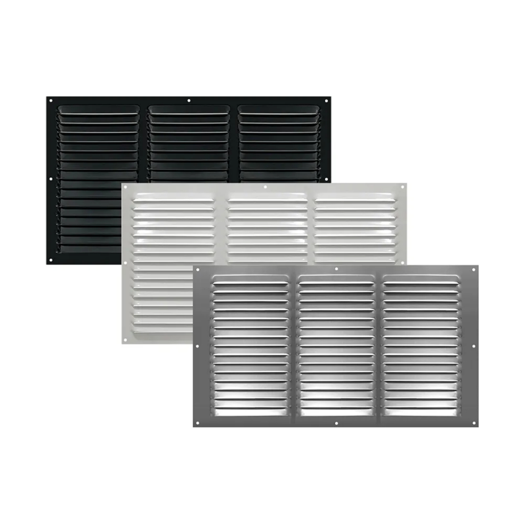 Tamanhos disponíveis: 15x10 / 15x15 / 20x10 / 20x15 / 20x20 / 20x33 / 25x25 / 30x30 / 34x56 / 35x20 / 40x40 / 45x25 / 45x45 / 50x50 / 55x55 / 60x60 cm. Disponível nas cores: Alumínio, Branco e Preto. (Selecione as opções desejadas no anúncio antes de efetuar a compra) -De acordo com a regulamentação do Corpo de Bombeiros. -Acompanha parafusos e buchas para a instalação, mas podem ser fixadas também com silicone. -Possui borda de acabamento e pingadeira para evitar a entrada da água da chuva. -Utilização interna e externa. -Grade de ventilação para entrada e saída de ar. -Feita de alumínio – não enferrujam. Grade de ventilação permanente para cozinhas, áreas de serviço, closets, banheiros, móveis etc..