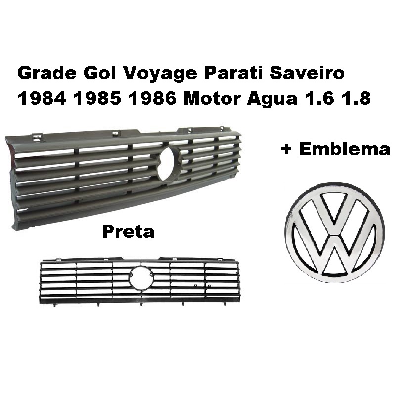 Grade Radiador Gol Voyage Parati 83 84 85 86 Preta + Emblema + Buchas 1002