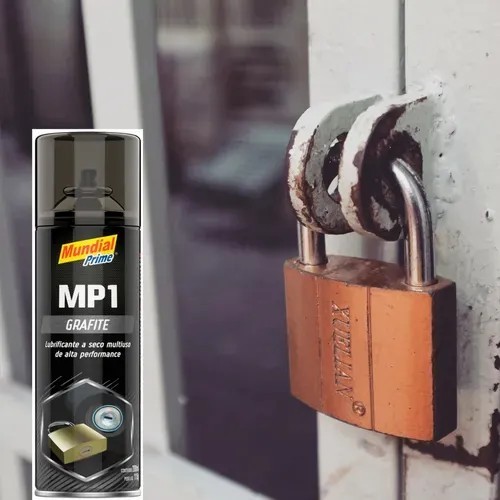 Grafite em Pó spray MP1 Produto desenvolvido para lubrificação de mecanismos em geral, pequenas engrenagens e superfícies deslizantes, antigripantes para roscas expostas às atmosferas corrosivas, canaletas de vidros, materiais em atrito, cadeados, fechaduras, correntes e correias. Instruções de uso.: Agite antes de usar. Com a superfície limpa e seca, aplique o Grafite Spray a uma distância de 15 a 20 cm. Imediatamente será formada uma película protetora e lubrificante de grafite. Para evitar entupimento: após a utilização, vire a lata de “cabeça para baixo” e pressione a válvula até que se note somente a saída de gás. Em caso de entupimento, retire a válvula e mergulhe em acetona ou tíner. Se necessário, limpe os orifícios com uma agulha bem fina. Precauções.: Aerossol inflamável, seguir atentamente as instruçoes da embalagem para cuidado e aproveitamento eficiente do produto.