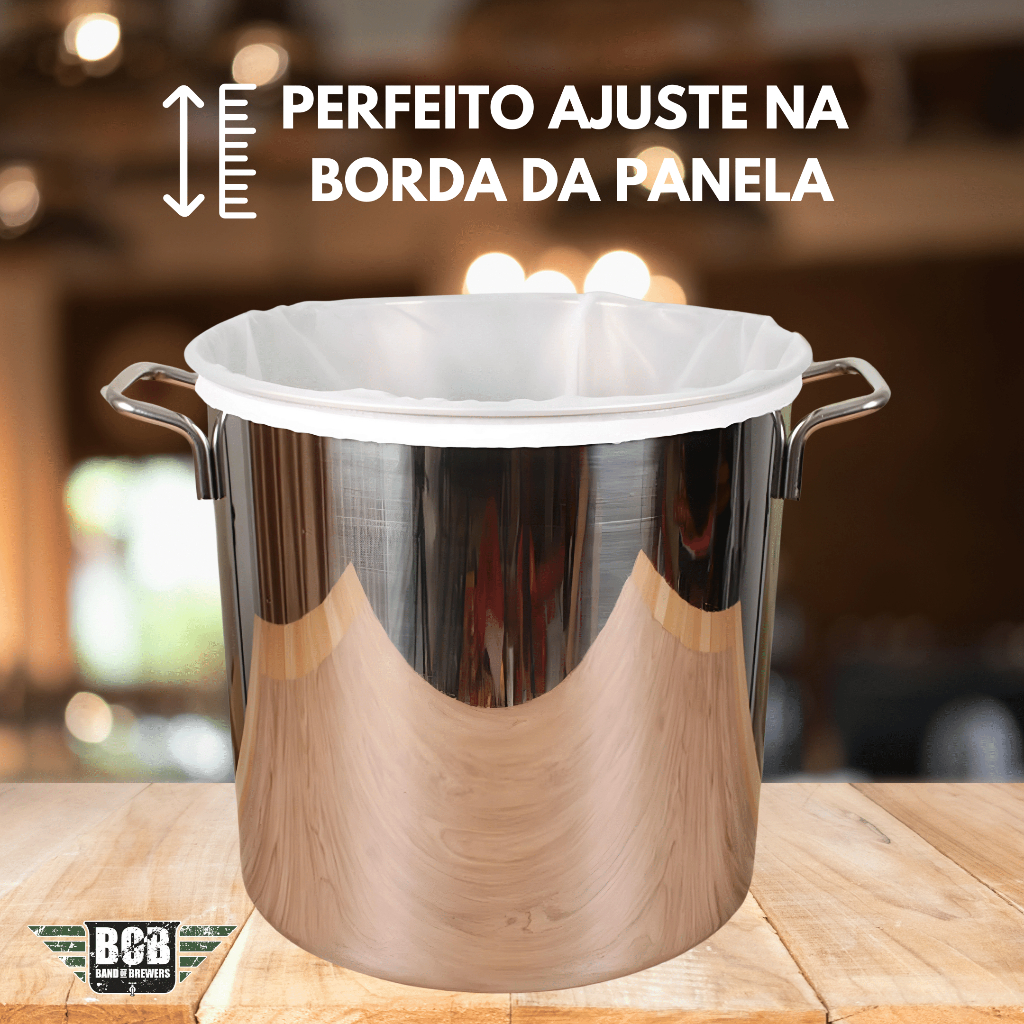 Saco (Grain Bag) para brassagens pelo método BIAB. Ideal para caldeirões de 38 a 45 litros ou similares com até 40cm de diâmetro e 40cm de altura. Possui costura reforçada e formato diferenciado para melhor se acomodar na panela e também direcionar o fluxo de escorrimento do mosto. Contém cordão para facilitar a fixação do saco na panela e possibilitar o fechamento do saco, dando mais segurança e praticidade na mosturação. A melhor qualidade em Grain Bags da SHOPEE! Material: Voal (atóxico) Tamanho aproximado: 73cm (largura) x 51cm (altura) Carga máxima de malte recomendada: 10kg Dúvidas? Entre em contato! Será um prazer atendê-lo!
