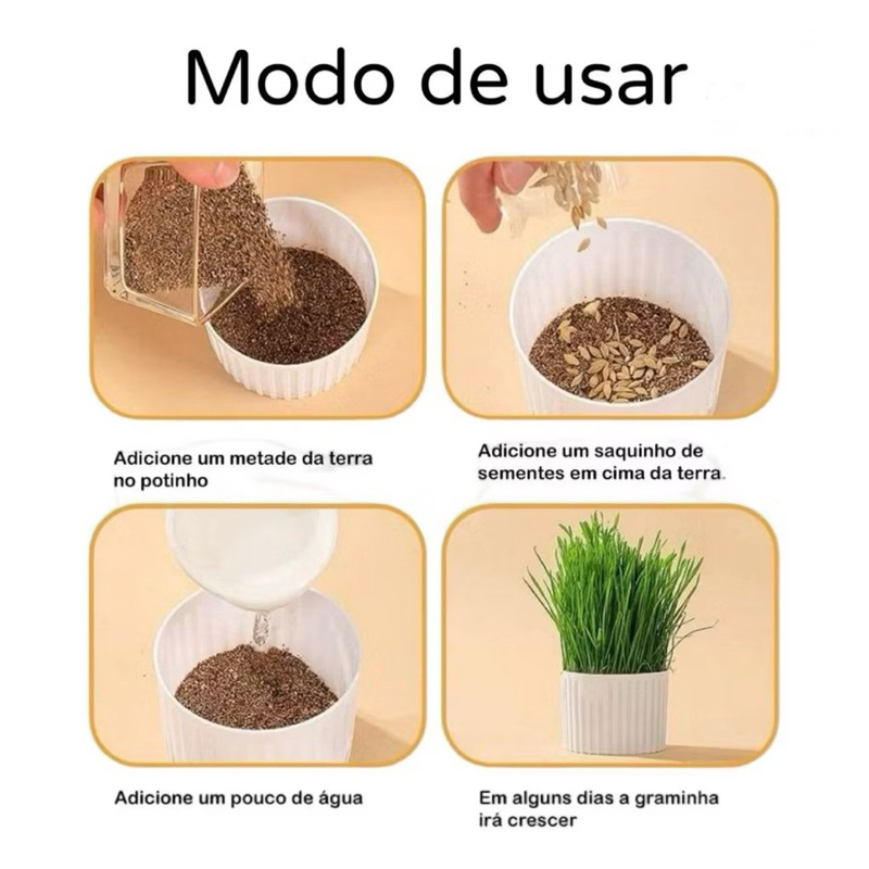 Grama Para Gatos Para Digestão Com Bandeja e Graminha
