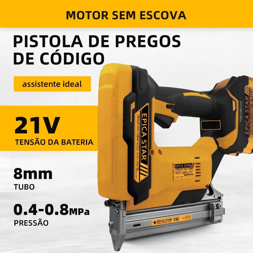 Grampeador e Pinador 2 em 1 Sem Fio 21V com 2 Baterias – EPICA STAR ULTRA F30 Potência, Praticidade e Precisão para Profissionais Exigentes O Grampeador e Pinador 2 em 1 EPICA STAR ULTRA F30 é a evolução em fixação portátil, projetado para oferecer alto desempenho, durabilidade e mobilidade em qualquer ambiente de trabalho. Com tecnologia brushless (sem escovas), garante maior vida útil, eficiência energética e potência constante, eliminando a necessidade de compressores externos. DESTAQUES TECNOLÓGICOS ✅ Tecnologia Brushless 21V – Motor mais eficiente, menor aquecimento e maior durabilidade, proporcionando até 30% mais autonomia em comparação a modelos convencionais. ✅ Dupla Função (Grampos e Pinos) – Compatível com grampos de 5 a 30 mm e pinos de 15 a 32 mm, ideal para diversas aplicações, desde montagem de móveis até construção civil. ✅ 2 Baterias de Íon-Lítio 2.0Ah – Cada bateria permite até 400 disparos por carga, com sistema de carregamento rápido (aprox. 60 min). O visor LED inteligente indica carga e alertas de manutenção. ✅ Compressor Interno de Alta Pressão – Elimina a necessidade de ar comprimido externo, garantindo disparos potentes e precisos em qualquer superfície. ✅ Design Ergonômico Antifadiga – Cabo emborrachado antiderrapante e peso balanceado para conforto em longas jornadas. ✅ Disparo Duplo (Single & Contact Mode) – Modo Single Shot (disparo único) – Para trabalhos de precisão. Modo Contact (disparo contínuo) – Aumenta a produtividade em projetos repetitivos. ✅ Trava de Segurança – Evita acionamentos acidentais, garantindo operação segura. ✅ Suporte para Cinto + Maleta Reforçada – Praticidade para transporte e acesso rápido em trabalhos suspensos. APLICAÇÕES PROFISSIONAIS ✔ Fixação de forros, rodapés e molduras ✔ Montagem de móveis, cadeiras e gavetas ✔ Construção de esquadrias, decks e estruturas leves ✔ Acabamento em marcenaria e artesanato em madeira ✔ Produção de engradados, paletes e embalagens KIT COMPLETO INCLUSO 📦 1 Grampeador/Pinador EPICA STAR ULTRA F30 🔋 2 Baterias Recarregáveis 21V 2.0Ah ⚡ 1 Carregador Rápido com LED de Status 🧰 1 Maleta de Transporte Resistente (IP54 à prova de poeira e respingos) 📖 Manual do Usuário em Português VANTAGENS EPICA STAR 🔹 Sem Fios, Sem Compressor – Trabalhe em Qualquer Lugar! 🔹 Alta Produtividade – Até 100 fixações por carregamento 🔹 Garantia Estendida – 12 meses contra defeitos de fabricação PERFEITO PARA: Carpinteiros, Marceneiros, Construtores, DIYers e Profissionais que exigem eficiência sem limites! 🛒 Leve já o seu e experimente a liberdade de uma fixação poderosa e sem complicações!