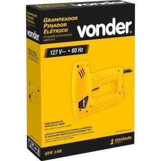 Indicado para estofarias, marcenarias, artesanato, madeiras macias, entre outros. ATENÇÃO: para não danificar o equipamento, a frequência maxima deve ser de ate 20 disparos por minuto. Grampos indicados: 28.98.168.208, 28.98.168.210, 28.98.168.212, 28.98.168.214 e 28.98.168.216. Pino indicado: 28.98.916.015. Utilizar somente os grampos e pino indicados. Proporciona maior agilidade nos processos de fixacao. Possui sistema de seguranca que so permite o acionamento do grampeador / pinador quando pressionado a peca, evitando disparos involuntarios. Conteudo da Embalagem: 1 Grampeador / pinador eletrico. Detalhes Tecnicos: -Modelo: GPE 168 -Tensão (V): 220v -Frequência: 60 Hz -Tipo e tamanho de pino indicado: Tipo "F" de 15 mm -Largura do grampo indicado: 11,3 mm -Altura do grampo indicado: 8 mm a 16 mm -Espessura do grampo indicado: 0,75 mm -Espessura do pino: 1,00 mm -Capacidade aproximada de grampos/pinos: 100 grampos / 80 pinos -Indice de proteção (IP): IP20 -Segue norma: IEC 60745-1 e IEC 60745-2-16 -Massa aproximada (peso): 1,38 kg