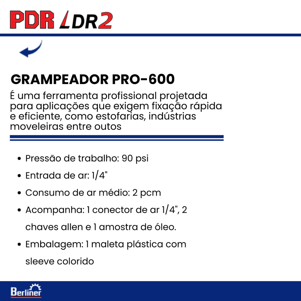 Grampeador Pneumatico Para Grampos De 6 A 16 Mm Profissional pdr pro-600