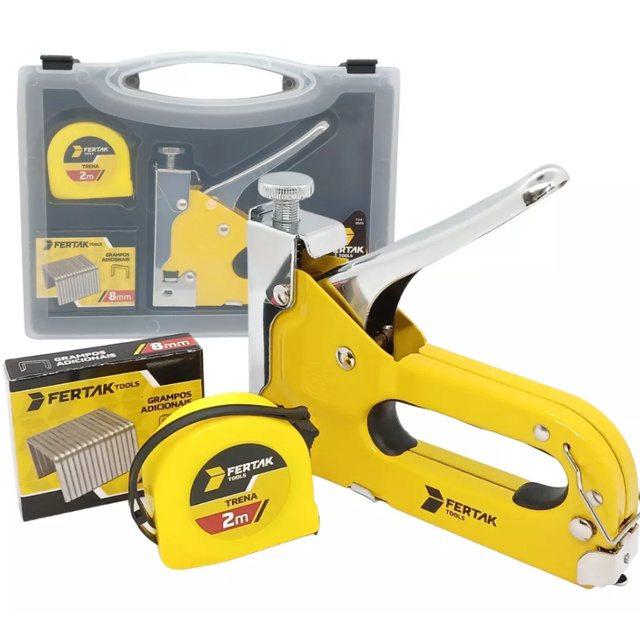 Grampeador Tapaceiro Profissional com Maleta + Trena + Grampos Fertak 4-14mm