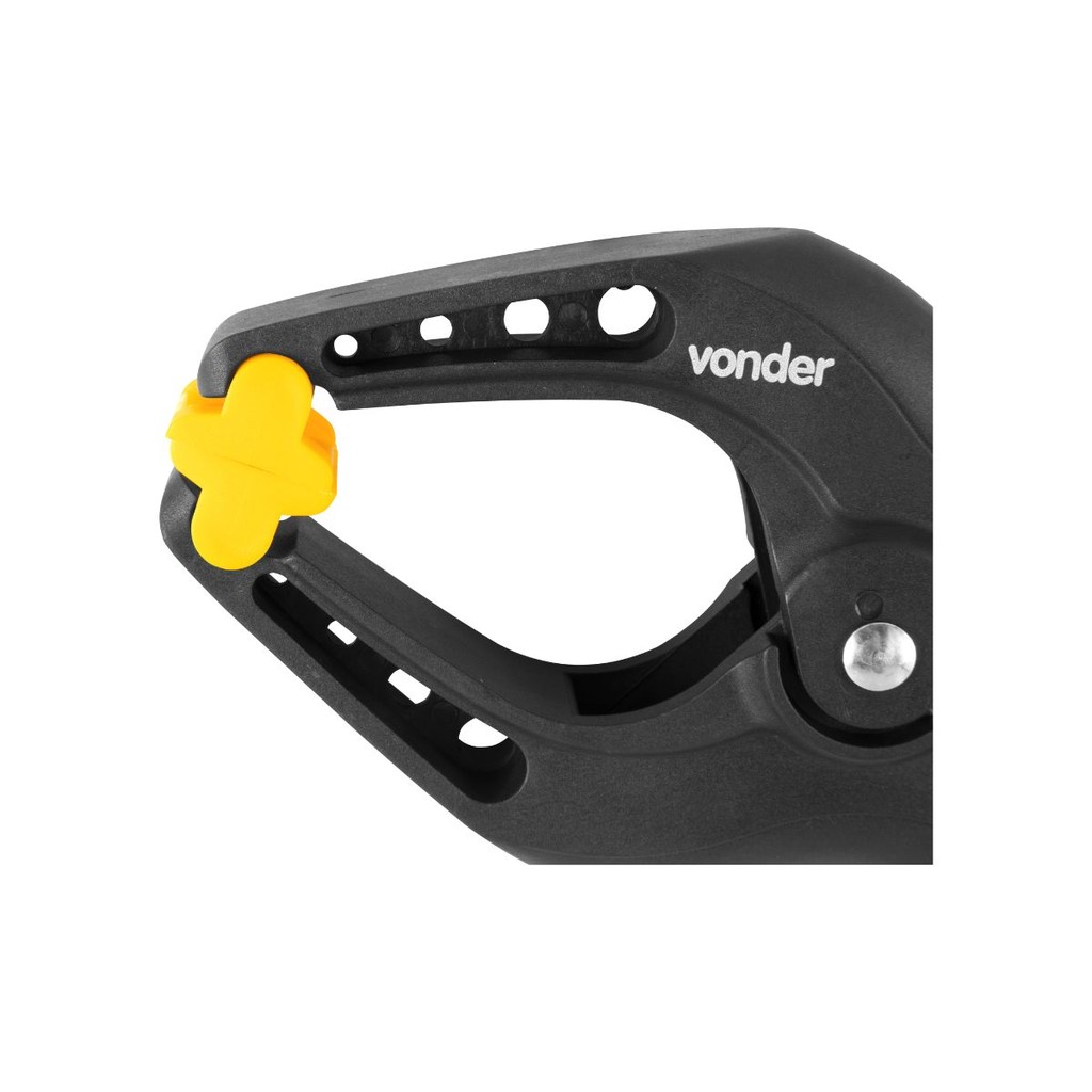 Indicado para fixar peças durante a colagem, montagem de móveis e fixações. Não utilizar para sustentação de peças. Força de aperto aproximada: 17 kgf. Estrutura em plástico ABS de alta resistência. Conteúdo da Embalagem: 1 Grampo multiuso. Detalhes técnicos: Comprimento total do grampo: 9" - 230 mm Material: Plástico ABS Abertura máxima do bico do grampo: 80 mm Espessura do corpo do grampo: 40 mm Cor: Preto e amarelo Massa aproximada (peso): 27 g kg