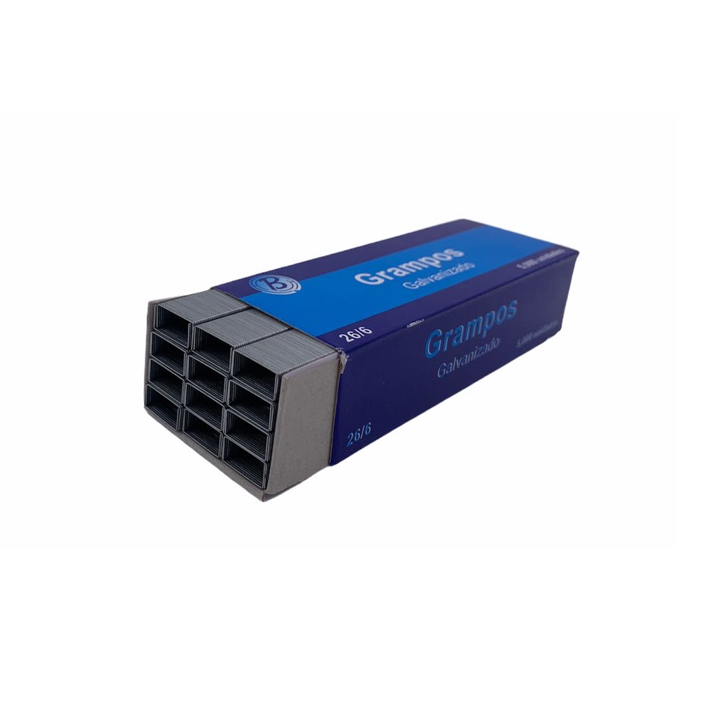 Grampo Galvanizado 26/6 Desenvolvido para uso em grampeadores, Com perfuração de até 25 folhas, Utilizado em Escritórios e Embalamentos, Maior resistência e maciez na hora de grampear, Peso: 75 g/m², Caixa com 5.000 unidades.