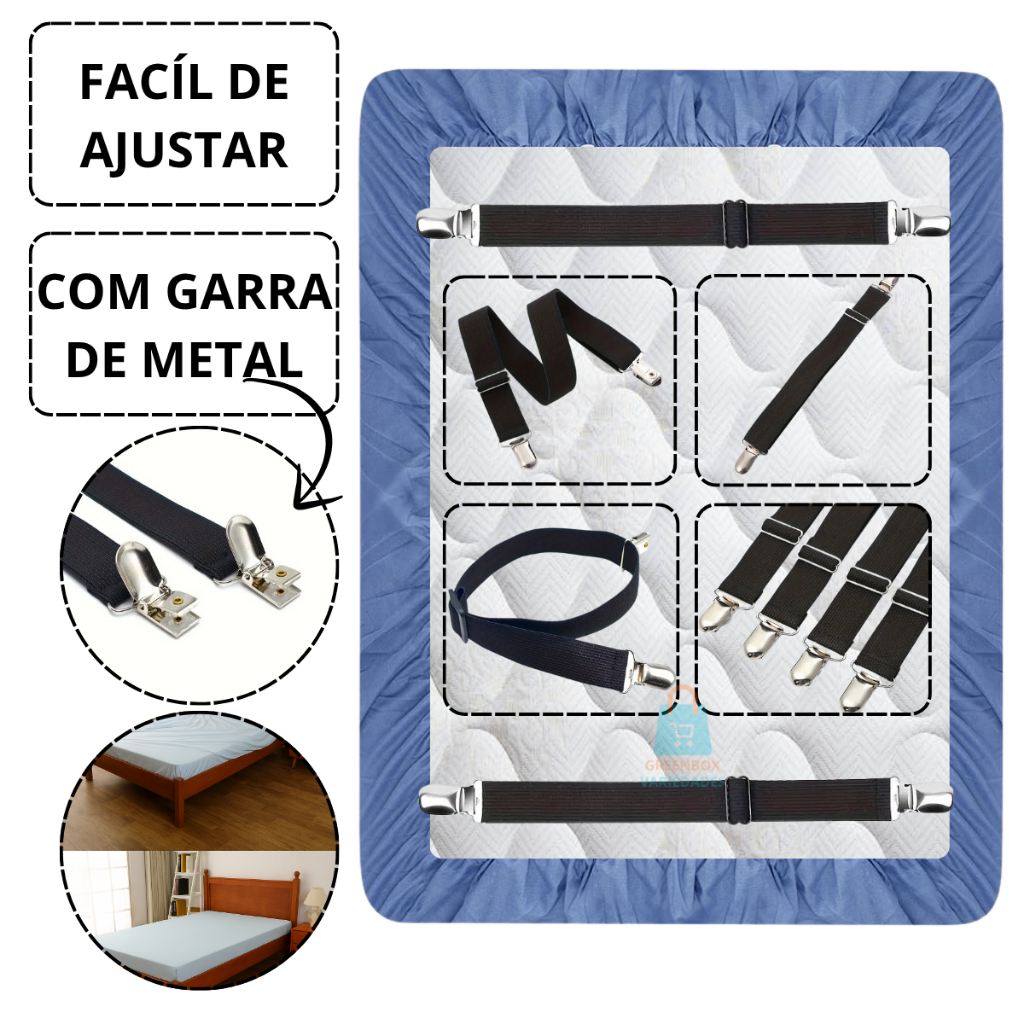 Grampo Prendedor de Lençol Ajustável Com Elástico 2 Pontas Com Garra Para Colchão Cama Sofá