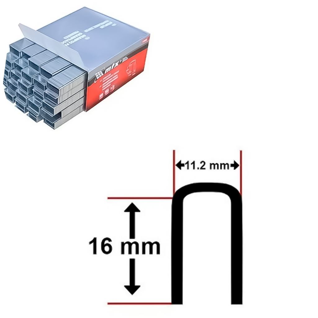 COMERCIAL VIPASA DISTRIBUIDORA Grampos Para Grampeador Pneumático comprimento 16mm, Referência do modelo: 576609, Marca: MTX. Feita de aço carbono. Eles têm revestimento de níquel. Os grampos são projetados para fixar o material em superfícies usando um grampeador pneumático. Especificação técnica: Peso 0,7 kg Altura 16 mm Material Aço Digite 20GA Espessura 0,6 mm Formulário retangular Largura 11,2 mm Embalagem: Altura na embalagem 55 mm Comprimento em embalagem 120 mm Qualidade na embalagem 5000 unidades, Largura no pacote 64 mm. DESCRIÇÃO GERAL: Os Grampos para Grampeador Pneumático de 16mm da MTX são uma escolha confiável para quem busca fixação eficiente e duradoura em uma variedade de materiais, como madeira, tecido, papelão, plástico e outros substratos compatíveis. Este conjunto contém 5000 peças de grampos, proporcionando um suprimento generoso para suas necessidades de fixação em projetos diversos. Principais características e benefícios: Alta Qualidade: Fabricados com materiais resistentes e duráveis, os grampos oferecem uma fixação sólida e confiável em uma variedade de superfícies. Comprimento de 16mm: Com um comprimento de 16mm, esses grampos são ideais para fixar materiais de espessura média ou para aplicações onde a penetração total do grampo é necessária. Compatibilidade com Grampeadores Pneumáticos: Projetados para uso com grampeadores pneumáticos que suportam grampos com um comprimento de 16mm. Aplicações Versáteis: Adequados para uma variedade de aplicações, como estofamento de móveis, instalação de carpetes, fabricação de caixas de madeira, montagem de molduras, trabalhos de tapeçaria e muito mais. Alta Capacidade: O conjunto de 5000 peças oferece um suprimento generoso de grampos, garantindo que você tenha o suficiente para concluir vários projetos sem interrupções. Facilidade de Uso: Os grampos podem ser facilmente carregados e utilizados com grampeadores pneumáticos compatíveis, proporcionando uma operação eficiente e sem complicações. Com os Grampos para Grampeador Pneumático de 16mm da MTX, você pode realizar uma variedade de projetos de fixação com facilidade e confiança, garantindo resultados de alta qualidade e durabilidade em suas aplicações. COMERCIAL VIPASA DISTRIBUIDORA