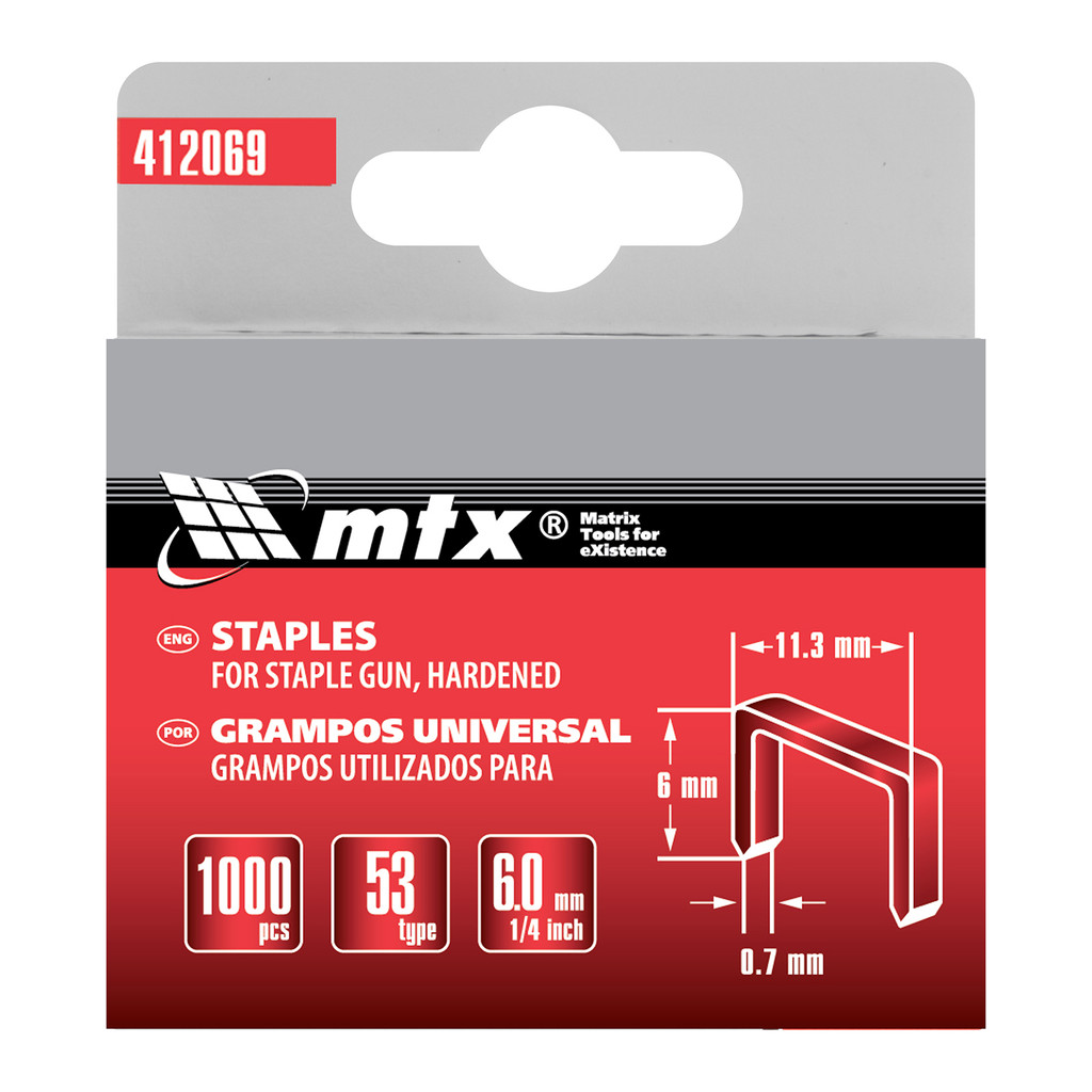 GRAMPOS PARA GRAMPEADORES, TIPO 53, TEMPERADO, 6MM, 1000 PCS // MTX