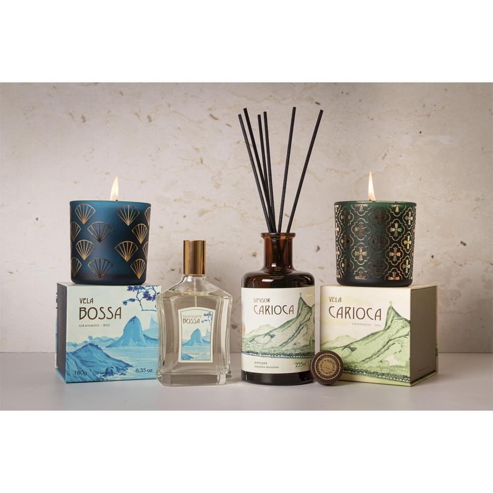 Carioca apresenta uma combinação equilibrada entre as notas cítricas e florais. Assim como o Rio, traduz a união das florestas com a brisa reconfortante do mar. Ao mesmo tempo que propõe uma leveza, tem um perfume marcante e um frescor contagiante. Difusor de ambiente Carioca e suas propriedades O difusor de ambientes da Granado conta com 85% de ingredientes de origem natural e alta concentração de fragrância, fornecendo uma perfumação de alta performance para o ambiente. O difusor de ambientes acompanha varetas de fibra de algodão, que potencializam a perfumação e propagam a fragrância continuamente, sem a necessidade de virá-las com frequência. A embalagem de vidro em âmbar segue a identidade visual da linha Vintage. O rótulo do produto é um resgate e uma homenagem à Perfumaria Hélios, antiga linha de luxo da Granado no início do século XX. Ideal para presentear, perfumar e decorar, além de proporcionar agradável sensação de bem-estar. Produto vegano. Conteúdo: 235ml. * SUGESTÃO DE USO: 1. Abra o frasco do seu difusor de ambiente Granado removendo a proteção transparente e rosqueando novamente a tampa vazada de acabamento; 2. Em seguida, mergulhe as varetas no líquido aromático e inverta a posição das varetas – colocando a parte molhada para fora do frasco – para, então, iniciar a propagação da fragrância no ambiente. * ITENS INCLUSOS: 1 Difusor de Ambiente Vintage Carioca 235ml