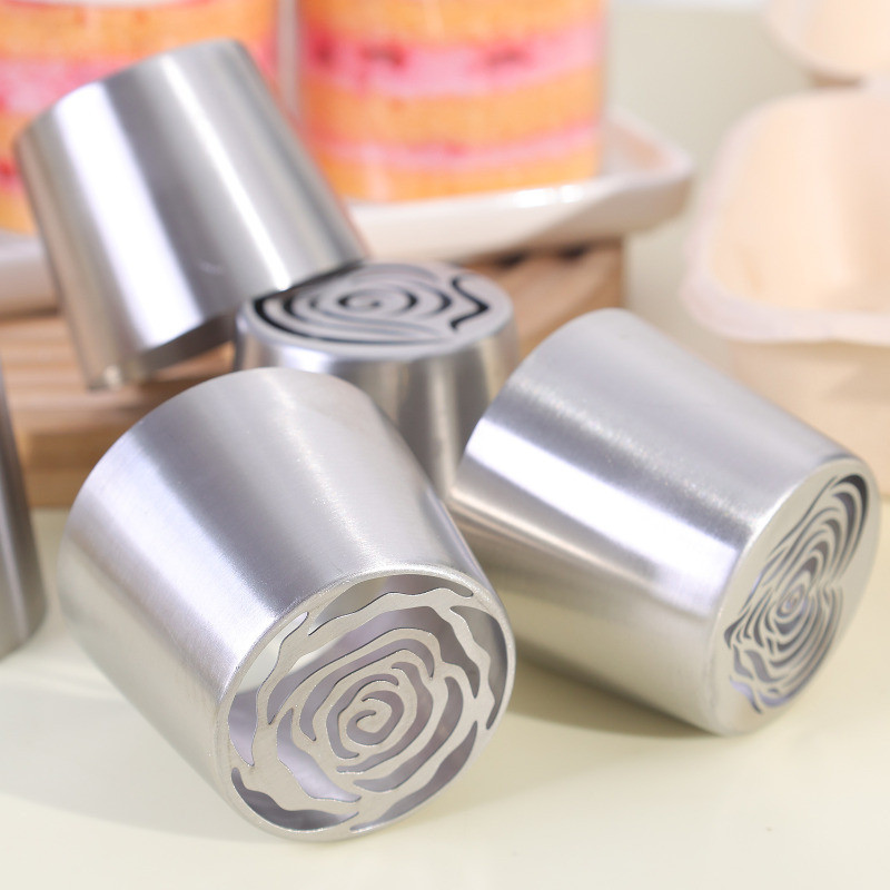 Grandes Pontas De Bico De Creme Russo De Aço Inoxidável-Bicos De Padrão De Flores-Suprimentos De Cozinha-Ferramenta De C