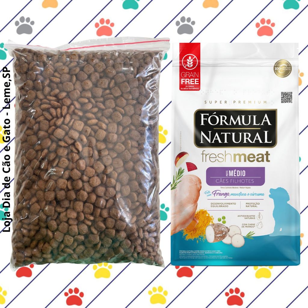 GRANEL 1Kg - Fórmula Natural Fresh Meat Cães FILHOTES Porte MÉDIO Frango, Mandioca e Cúrcuma integra a oferta da Shopee Brasil na subcategoria Ração para Cachorros (de Animais Domésticos) por R$ 35,00.
