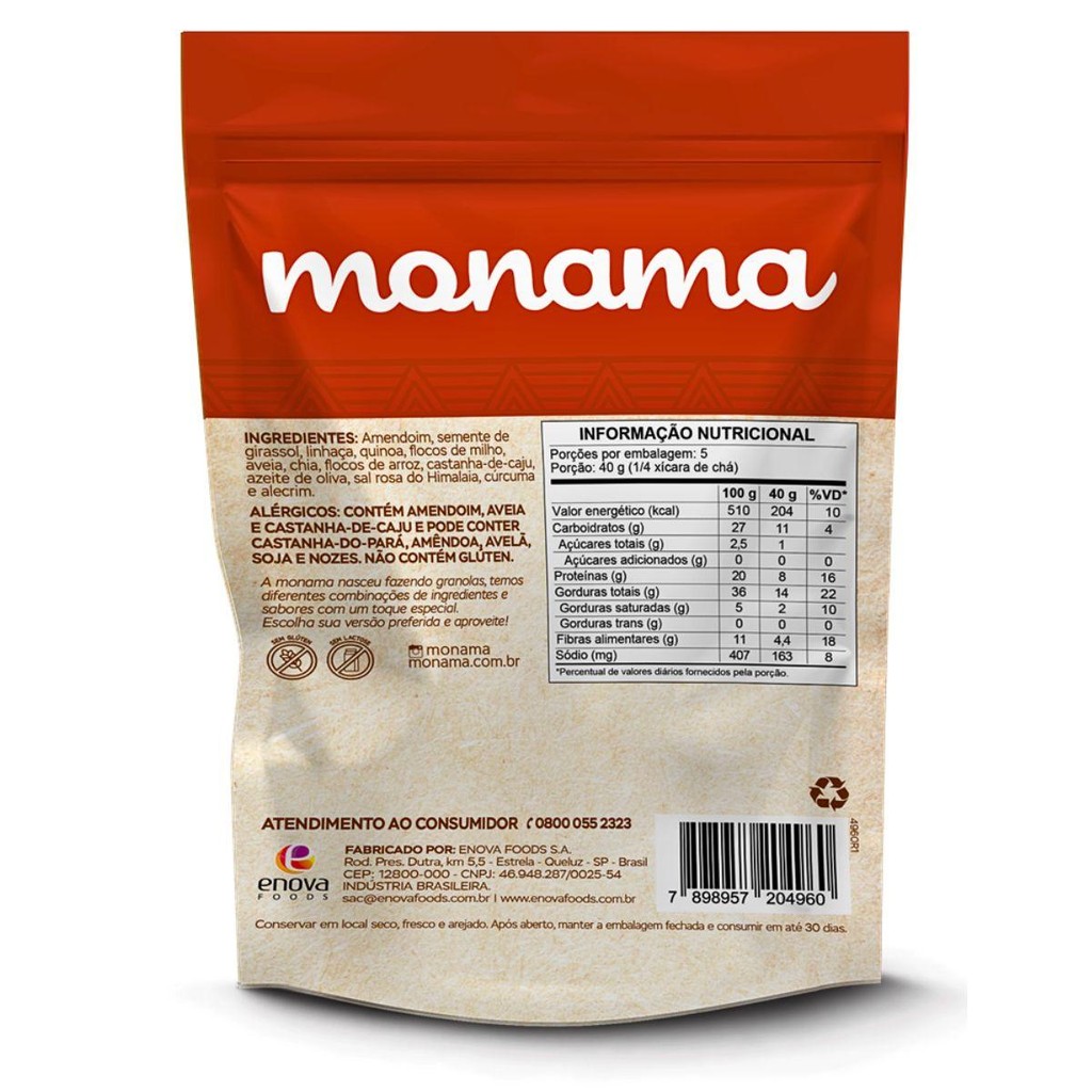 Granola Salgada Alecrim E Cúrcuma 200G Sem Glúten Monama