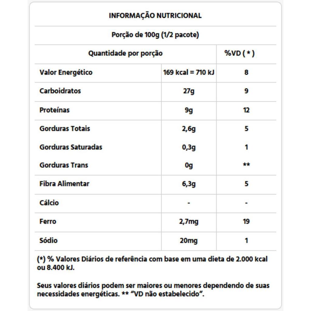 O grão de bico é um alimento cheio de benefícios: traz sensação de saciedade, é rico em triptofano, um aminoácido capaz de despertar a sensação de bem-estar e magnésio, que auxilia no relaxamento e reduz a ansiedade. E com o GRÃO DE BICO VAPZA, você também ganha praticidade sem perder nenhum benefício desse alimento. Contém glutén? Não Info. complementar alérgicos: Pode conter Soja Prazo de validade: 9 (nove) meses. Condições de armazenamento: Armazenar em temperatura ambiente (até 30ºC) em local seco e arejado. Não consumir se a embalagem plástica estiver danificada. Após aberto, manter sob refrigeração e consumir em, no máximo, 2 dias ou congelar por até 1 mês.