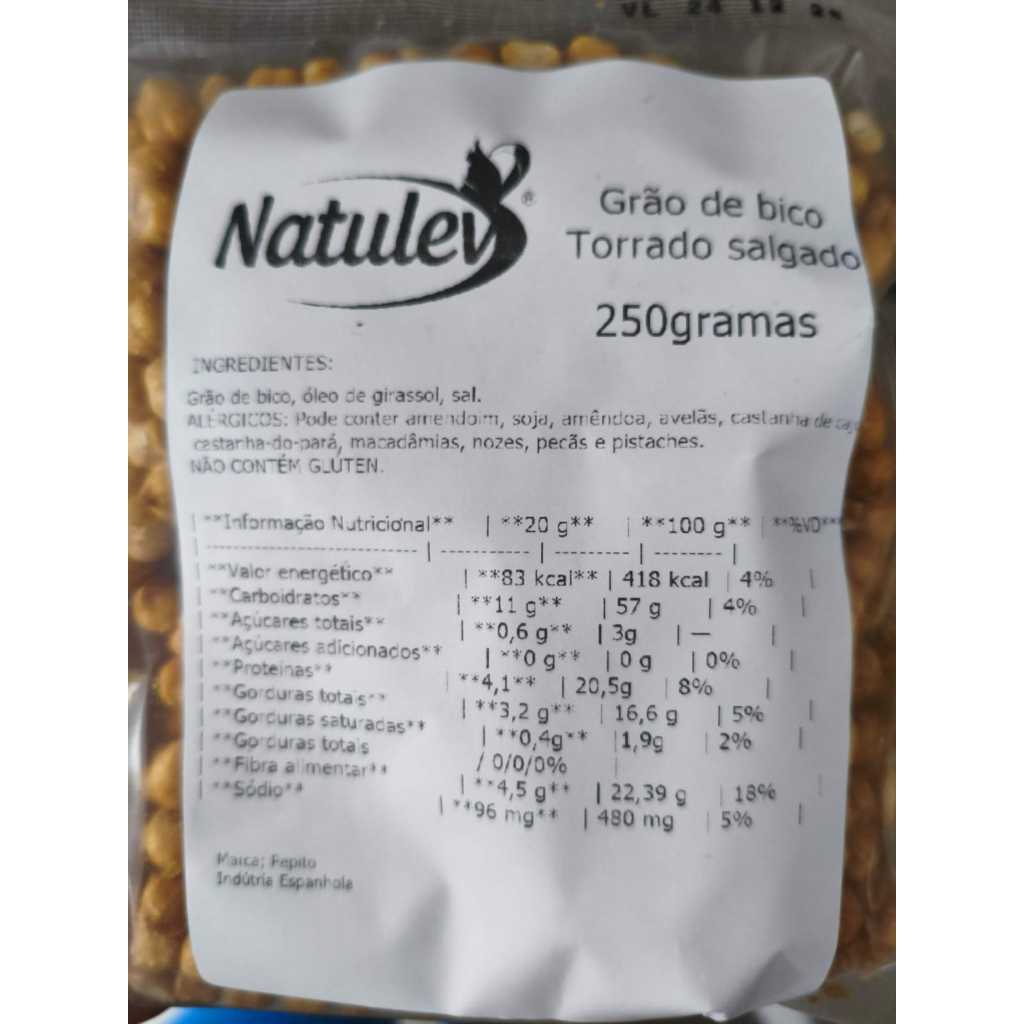 | Grão de Bico Torrado Salgado 500gr/250gr este produto | R$ 43,99 | 56% | 4.6/5 | — |