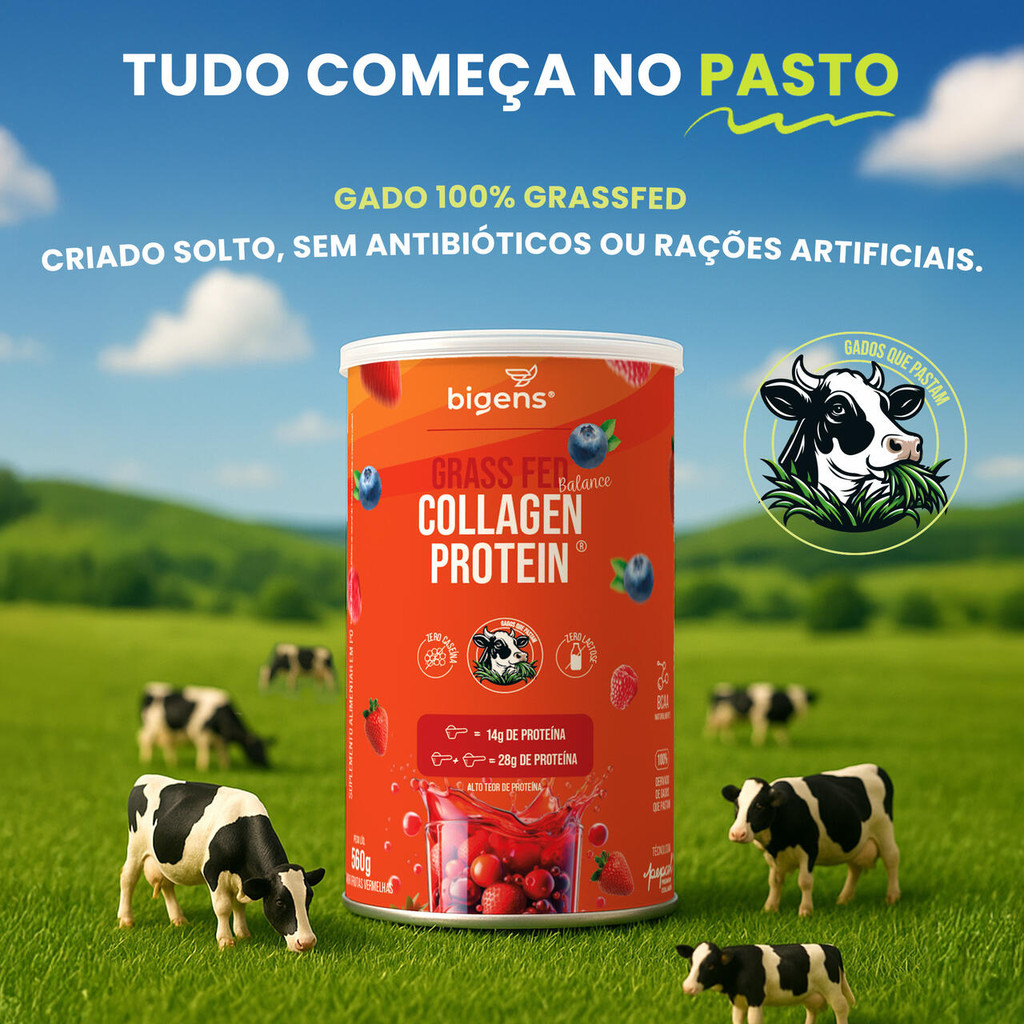 Grass Fed Balance Collagen Protein® 28g Proteína | Colágeno Pepcol® | Frutas Vermelhas | 560g Bigens