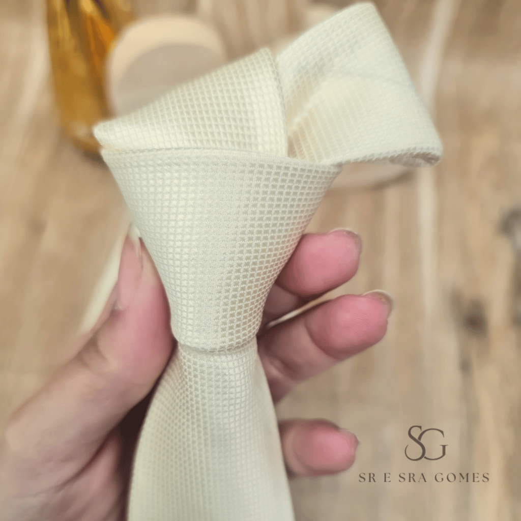 Gravata Champanhe Tecido Trabalhado Quadradinho