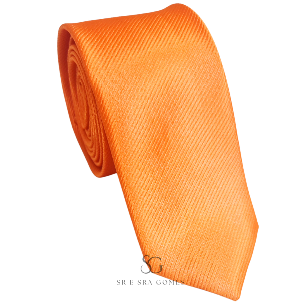 Gravata Laranja Tecido Trabalhado Riscadinho