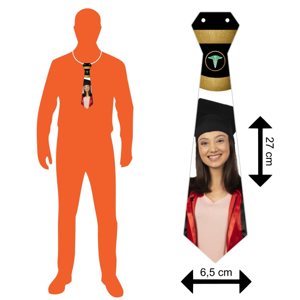 Gravata Personalizada com Foto **** ATENÇÃO, GRAVATA 100% PAPEL 3 A 15 GRAVATAS = 1 FOTO ACIMA DE 15 = 3 FOTOS Transforme suas memórias em estilo com nossa gravata personalizada com a sua foto! Ideal para formaturas, casamentos e festas em geral, essa gravata é o acessório perfeito para destacar-se em qualquer ocasião especial. Características: -Material: Papel fotográfico premium fosco (Não reflete nas fotos) -Acompanha elástico preto de 50cm -Impressão de alta qualidade -Recorte eletrônico Personalize com uma foto especial, tornando a gravata única e inesquecível A gravata será confeccionada com sua imagem, garantindo um produto exclusivo e cheio de personalidade. Como Personalizar: 1. Envie a foto de sua escolha pelo anexada pelo chat ou o link do canva/drive(melhor qualidade) 2. Escolha a cor dos detalhes da gravata como: dourado, prata, verde, vermelho, bordô 3. Informe o curso para o logo