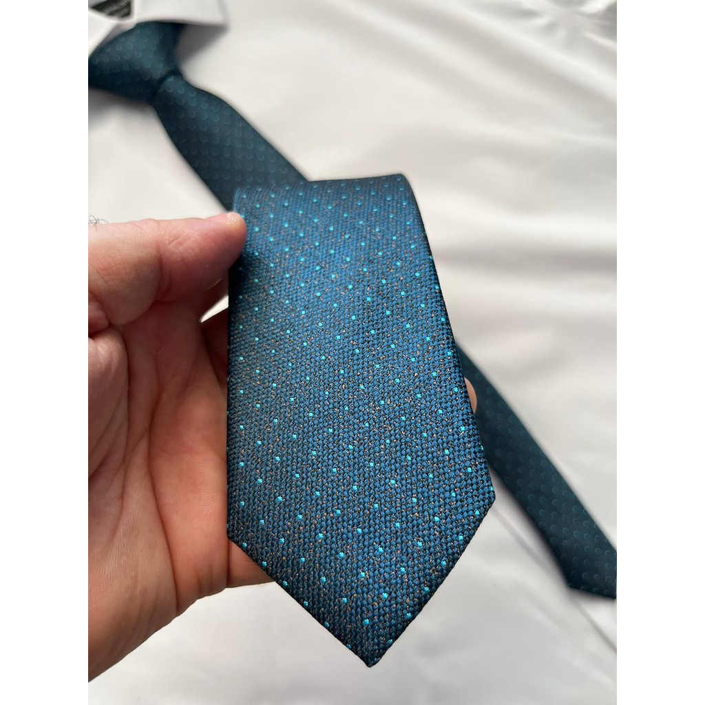 Gravata Slim Azul Petróleo Pontinhos - 2400 Fios