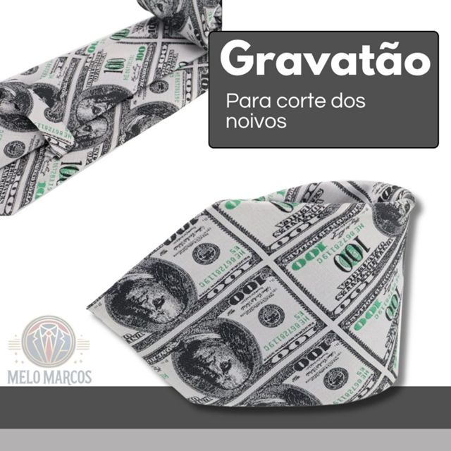 | Gravatão Largo Dólar Para Noivo Brincadeira Corte Casamento Arrecad... este produto | R$ 26,70 | 11% | 4.9/5 | 133 |