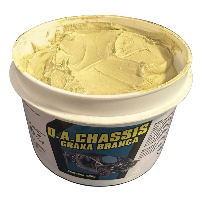 Graxa Branca JOCLE - embalagem em 500g É uma graxa especial que proporciona alto desempenho. Possui anticorrosivos e antioxidantes, que permitem uma lubrificação mais eficiente e que se prolonga ao longo do tempo. Várias aplicações, resistente a umidade, insolúvel a lavagem por água, viabilidade de uso em temperaturas constantes de até de 70°C e proteção contra oxidação e corrosão. Produto elaborado a base de lítio. Recomendação; - Correntes de Moto - Correntes de Bicicleta - Fusos de Portões Basculantes - Roldanas em Geral - Molas de portas de Aço - Tornos - Aplicações em Geral 1 unidade