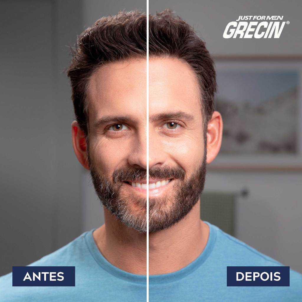 Just for Men coloração para barba e sobrancelha. Para um visual mais definido e com mais volume, cobertura instantânea dos fios brancos em apenas uma etapa. Preenche áreas com falhas e pouco cabelo. Até 30 aplicações. Define a barba instantaneamente. Dura o dia todo até desbotar com a lavagem. Sem corantes e hipoalergênico.