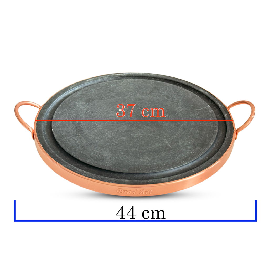 Chapa de Pedra Sabão Natural Fabricada na Bras Art Grelhar seus alimentos de forma prática e saudável Nossa chapa de pedra sabão é a escolha perfeita para quem busca uma alimentação saudável e quer manter os alimentos sempre quentinhos! Feita 100% com pedra sabão uma rocha natural, sem metais pesados, essa chapa preserva o sabor dos alimentos e libera minerais essenciais para a sua saúde. Especificações da Chapa de Pedra: Matéria Prima: Pedra Sabão, nome científico: Esteatita Acompanha: Alças e contorno de cobre, metal nobre fixos na grelha. Espessura: 2 cm Diâmetro externo: 37 cm Diâmetro interno: 35 cm Medida de alça a alça: 44 cm Peso: 4 kg OBS: A Chapa de pedra por ser natural e 100% artesanal pode incluir variações em seu processo de fabricação, incluindo: medidas. Tanto um pouco para mais ou um pouco para menos A pedra sabão por ser um produto natural possui veios naturais, que está presente em 95% da rocha, sendo uma característica comum da pedra sabão, sendo somente estética isso não afetara na durabilidade e nem na funcionalidade da chapa O que pode ser feito na chapa de pedra sabão? Carne bovina, suína Frango Peixes Legumes Frutos do mar Queijos Você pode usar sua chapa de pedra como se fosse uma chapa convencional, pode fazer de tudo. Benefícios da Chapa de pedra sabão: Libera: Ferro, Cálcio, Magnésio e Manganês durante o preparo dos alimentos Realça o sabor dos alimentos Antiaderente natural (sem teflon ou produtos químicos) Não libera toxinas– segurança total para a saúde Instruções de limpeza da sua Chapa de pedra sabão: A Chapa de pedra por ser antiaderente natural é mais fácil de limpar do que as grelhas convencionais basta usar água, sabão ou detergente e uma esponja de sua preferência. Observação: Enviamos a chapa na tonalidade natural da pedra, em cinza claro. Isso é a certeza de que está recebendo uma grelha nova que nunca foi utilizada. Cada grelha acompanha um manual impresso com o processo de cura, que é rápido e simples de fazer. Após a cura, a chapa ficará permanentemente escura, como mostrado nas imagens do anúncio. Disponibilidade: Pronta entrega com entrega imediata. Aproveite a fabricação própria e preço justo da Bras Art! O melhor da chapa de pedra sabão está aqui empresa familiar com história, qualidade e benefícios para sua cozinha!